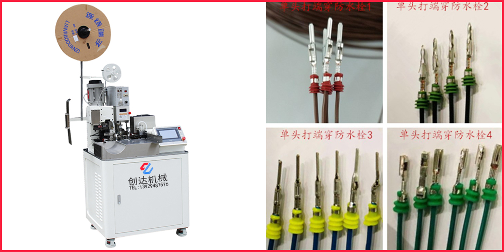 創(chuàng)達機械之全自動穿防水栓壓端子機,智能化操作,人機界面,所有調(diào)節(jié)參數(shù)電腦調(diào)控,振動盤自動排序送防水栓,操作方便,維護簡單,磁性開關(guān)自動感應(yīng)檢測,缺料或故障自動報警停機。